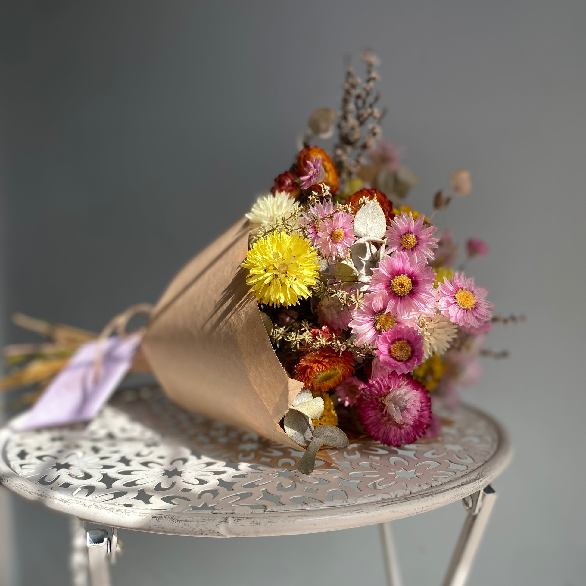 The Small Everlasting Daisy Bouquet overflows with a variety of naturally dried and locally grown Australian Paper Daisies.