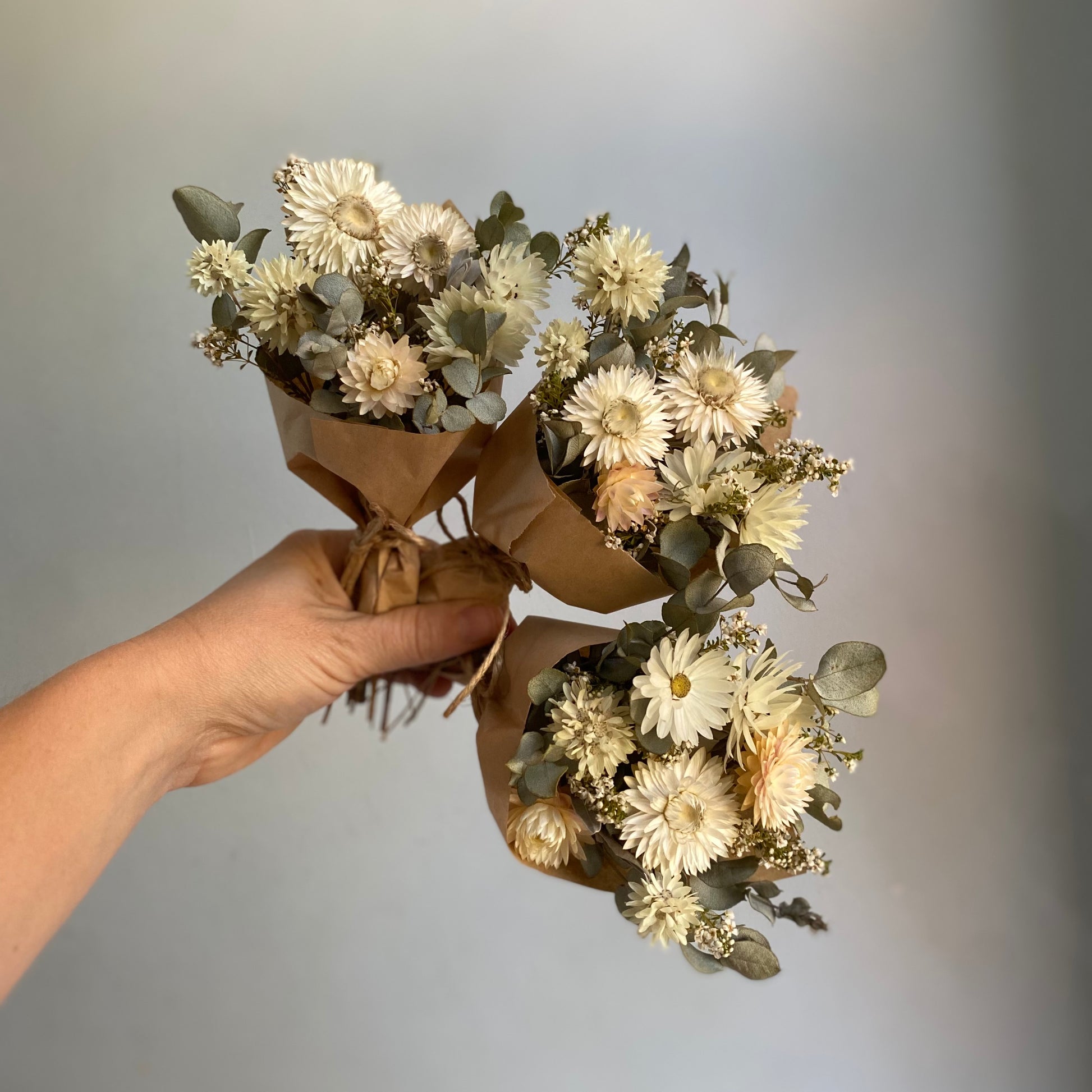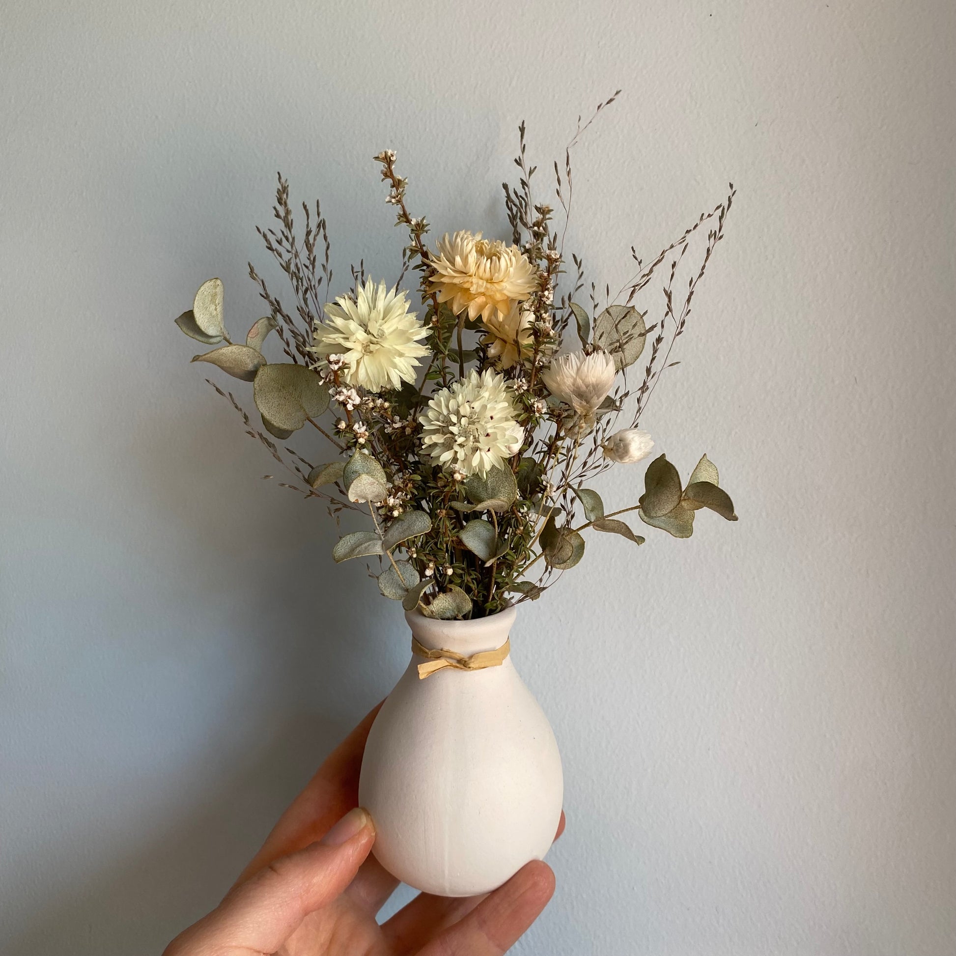 Each mini bouquet is brimming with a variety of naturally dried and locally grown Australian paper daisies. I grow a lot my flowers and foliage myself in my home garden in Perth, Western Australia. I also source locally grown and naturally dried wildflowers to supplement what I grow myself.