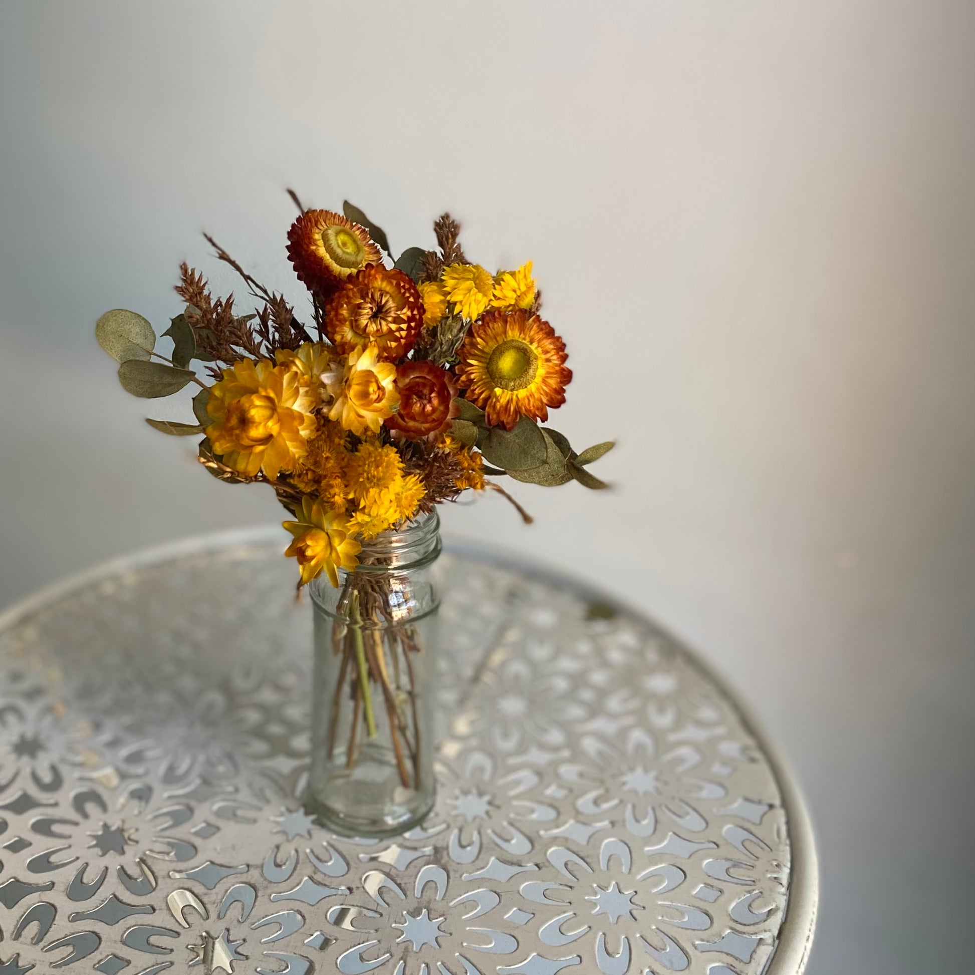 Each mini bouquet is brimming with a variety of naturally dried and locally grown Australian paper daisies. I grow a lot my flowers and foliage myself in my home garden in Perth, Western Australia. I also source locally grown and naturally dried wildflowers to supplement what I grow myself.