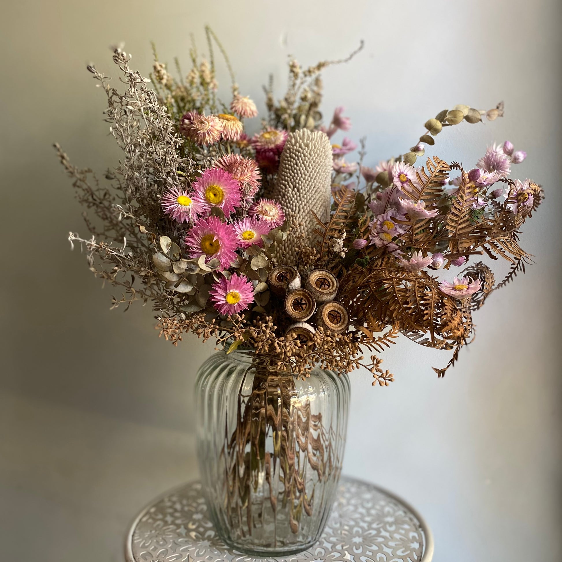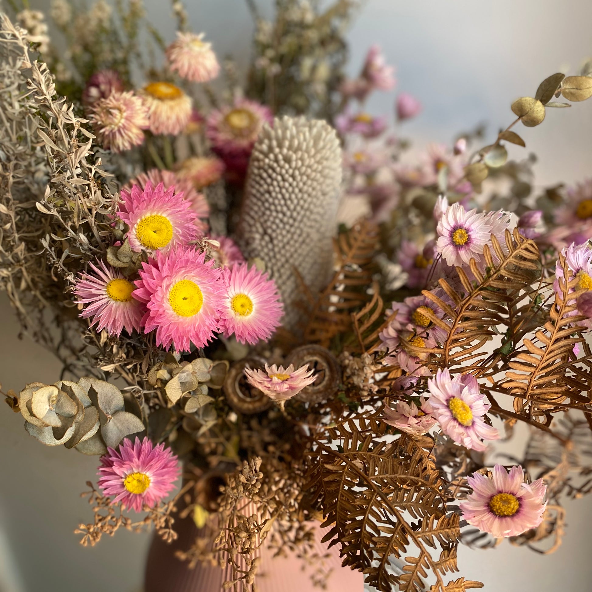 I grow a lot of my flowers and foliage myself in my home garden in Perth, WA. I also source locally grown and naturally dried Australian wildflowers to supplement what I grow myself.
