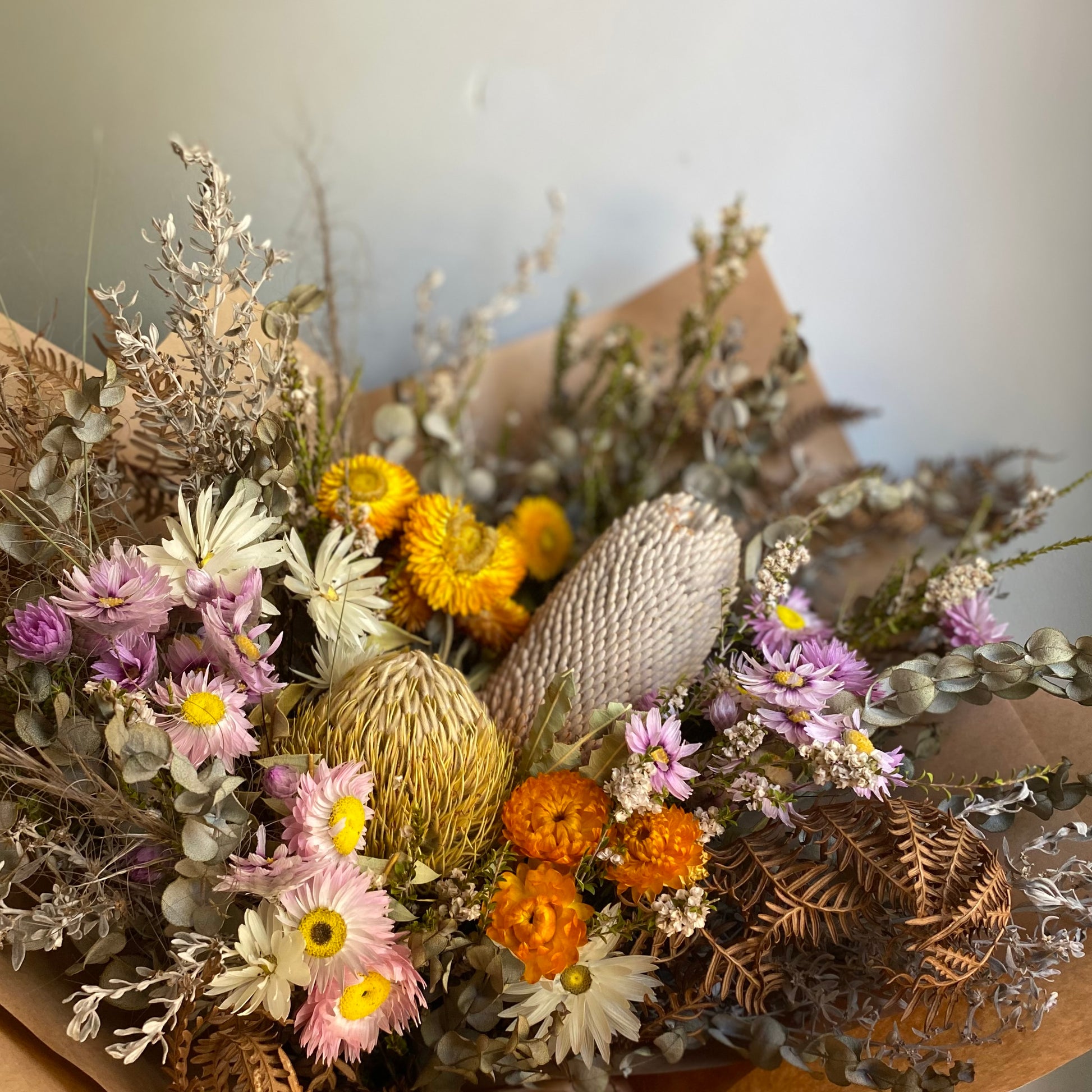 This naturally dried bouquet is brimming with iconic Australian wildflowers that have been locally grown in Western Australia.